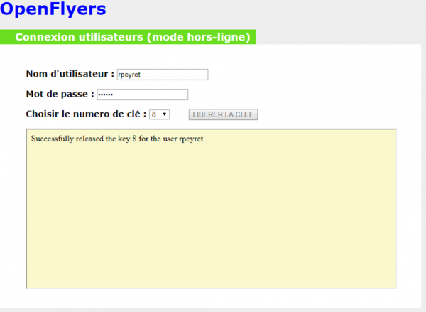 • Une page permettant de libérer les clés indépendamment d'une connexion avec le serveur s'affiche :