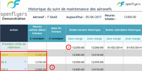 Dans ce cas, il est nécessaire de choisir, pour chaque action (moteur, hélice, visite 50h et autres), des travaux de référence qui ont deux rôles :